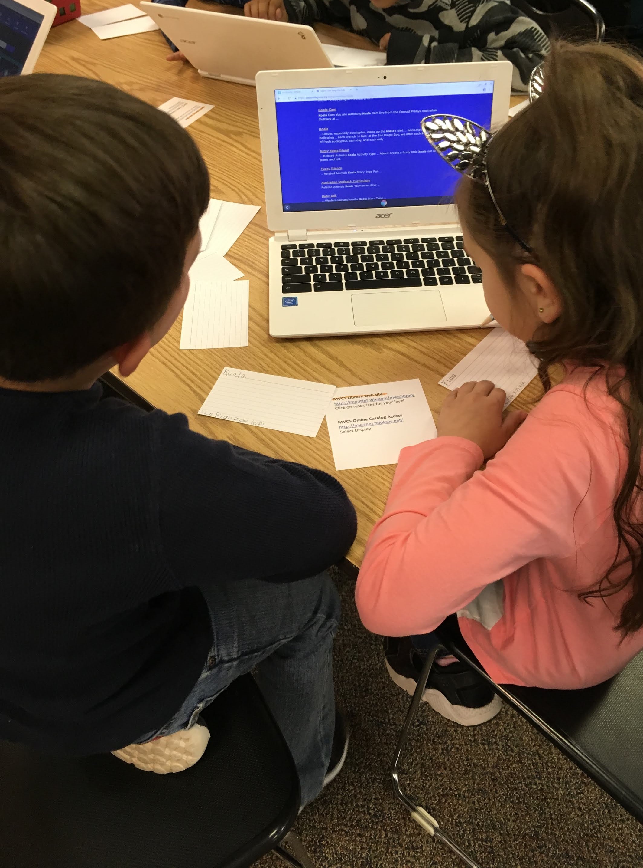 My second graders visited the library to research – their first time to do so. The teacher had assigned them a short “paper” on koala and sloth and wanted the students to learn how to use the chrome books and how to safely research their topics. Several years ago I found this clickable pdf for online animal research from The Library Patch on Teachers Pay Teachers. It is a free resource and I added it to my library web site. It is so useful and I have used it every year since finding it. So that they did not become overwhelmed, we told them they could only use the top two resources – SanDiego Zoo Kids and National Geographic Kids. We encouraged the students to put just one fact per page which will make organizing notes for their “paper” easier. We also required them to put their source on each note card. At this level we are just requiring the name of the web site but as they get older they will be required to provide full bibliographic information. The class visited twice and the the teacher told me the second time that the students were so excited to come to the library to work on this project. I hope this joy of research continues.